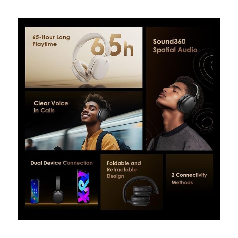 With up to 65 hours of battery life in Bluetooth mode, these headphones keep the music playing day and night for your longest journeys.